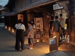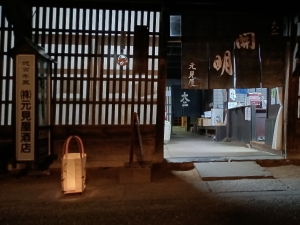 明和7(1770)年に建てられた「平入り」の建物。蔀(し とみ)や格子(こうし)など卯之町らしいデザインが残る町並みの代表的な町家。大正時代初期まで酒造業を営み、大正8(1919)年に「卯之町醤油株式会社」を設立し、昭和12